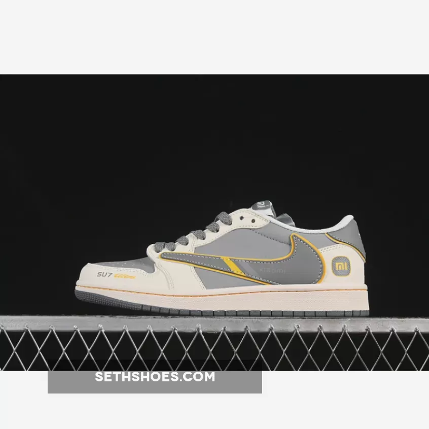 TRAVIS SCOTT X FRAGMENT DESIGN X AIR JORDAN 1 LOW OG SP WHITE/GREY/YELLOW – the ultimate choice for style and comfort on SETHSHOES.COM.